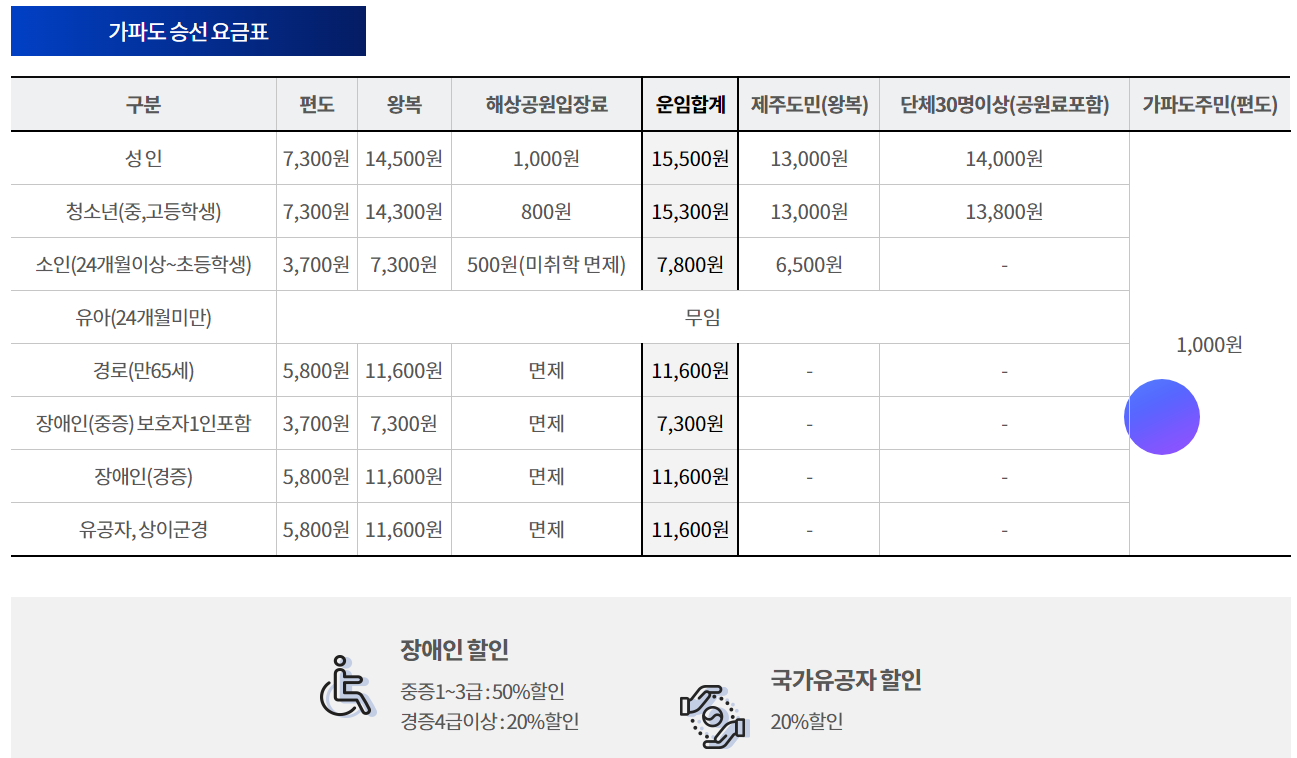 ✅ 가파도 배 요금표