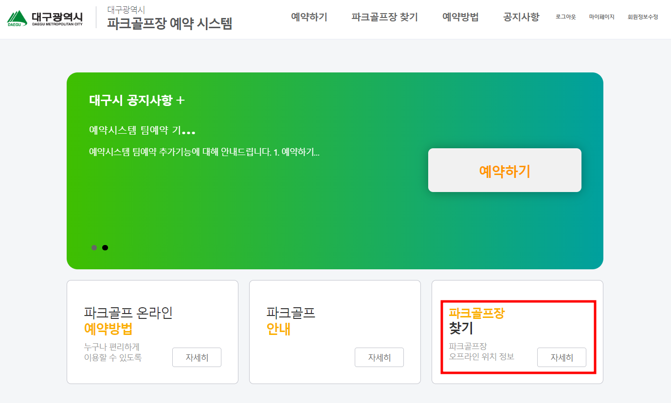 대구 파크골프예약시스템 파크골프장 검색 방법