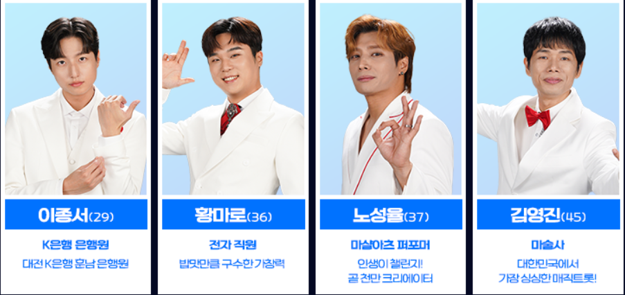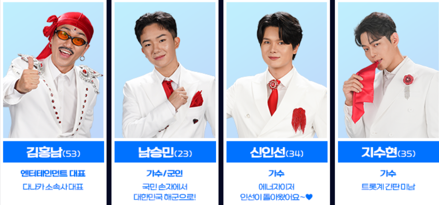 - 최고령: 김칠두(70세, 모델 출신) 👉 인스타그램