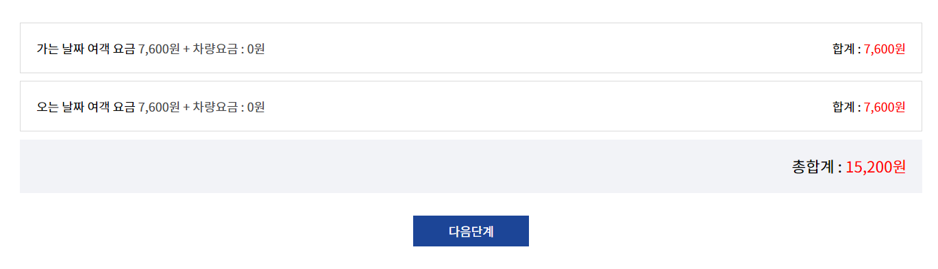 | 구분 | 편도 | 왕복 |