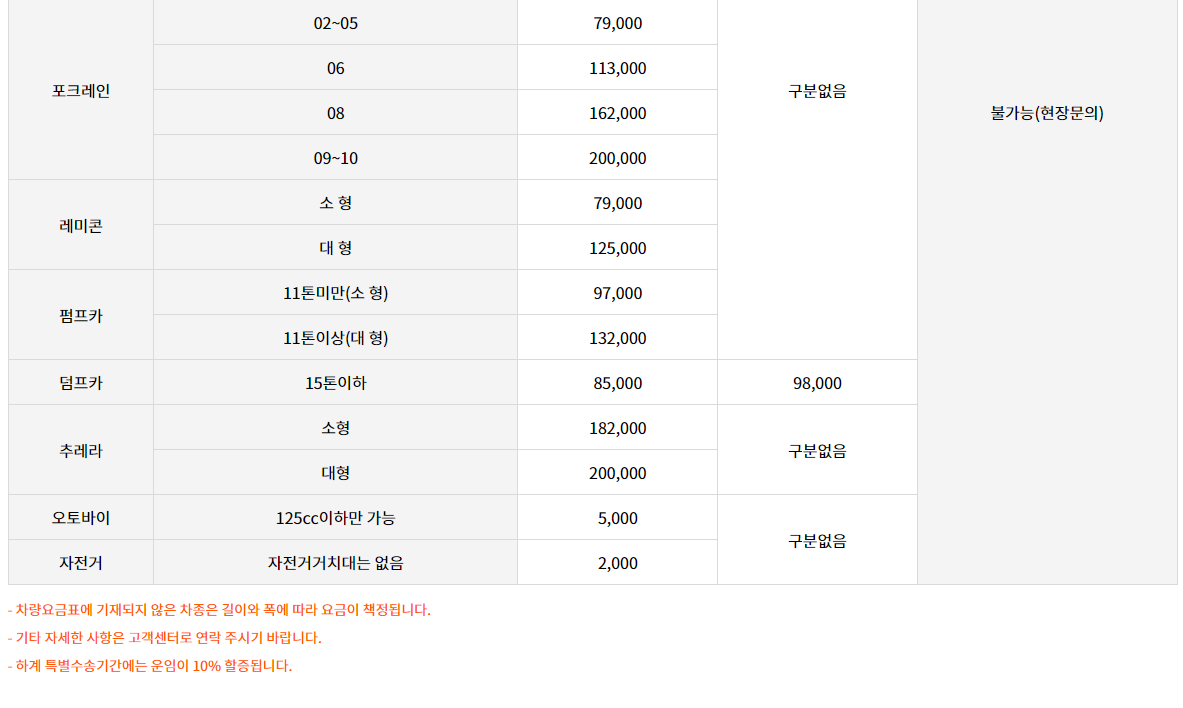 | 4톤 이상 화물차량 운전기사 | 무임 | 무임 |