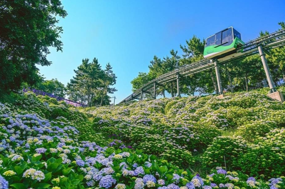 장생포 모노레일을 타면 공중에서 장생포 앞바다와 고래문화마을, 울산대교, 울산공단의 풍경을 한눈에 조망할 수 있어요. 특히 모노레일에서 보는 수국 풍경이 정말 아름다워서 국내에서 흔치 않은 명소랍니다!