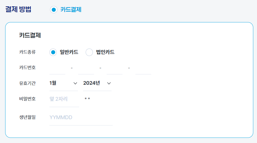 결제정보를 모두 입력해 주시면 모두 완료입니다.