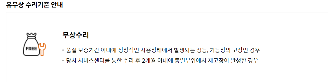 유무상 수리기준 안내입니다.