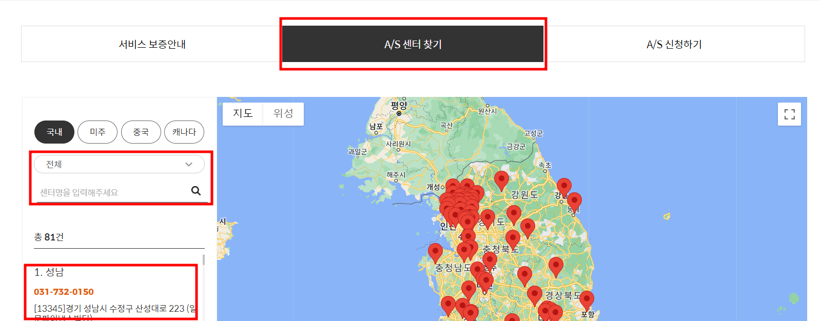 정확한 위치를 검색하고 방문하시거나, 출장서비스를 접수해서 서비스를 받아보시기 바랍니다.