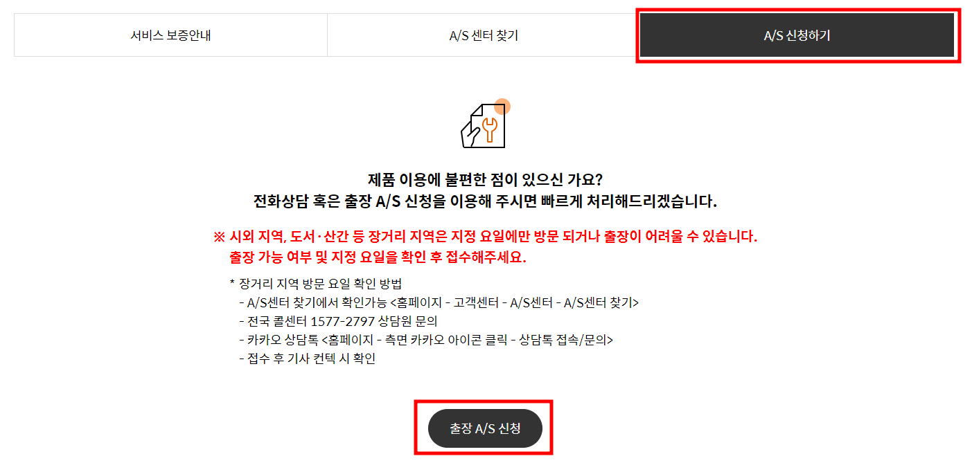 온라인으로 쉽게 접수가 가능하니 고장이 있는 제품이면 지금 바로 접수해서 서비스를 받으시기 바랍니다.