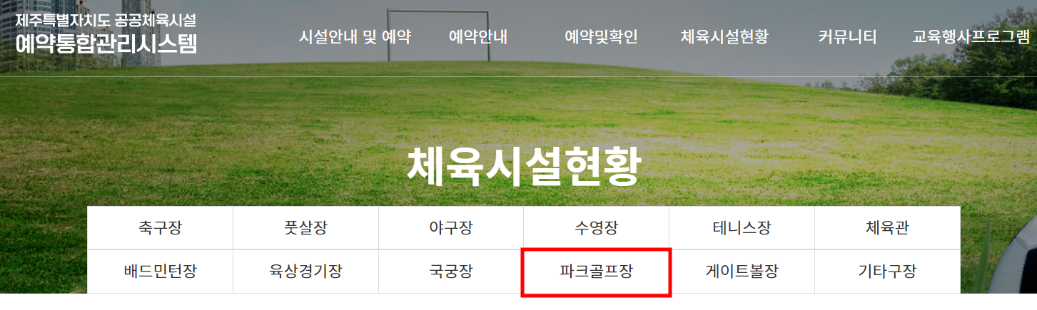 제주시 체육시설 통합관리 시스템 - 회천파크골프장 이용정보