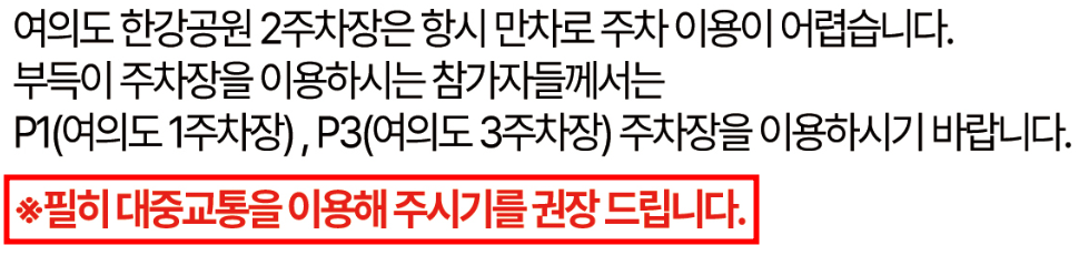 - 대회장소: 여의도 이벤트 광장 (여의나루역 2번 출구)
