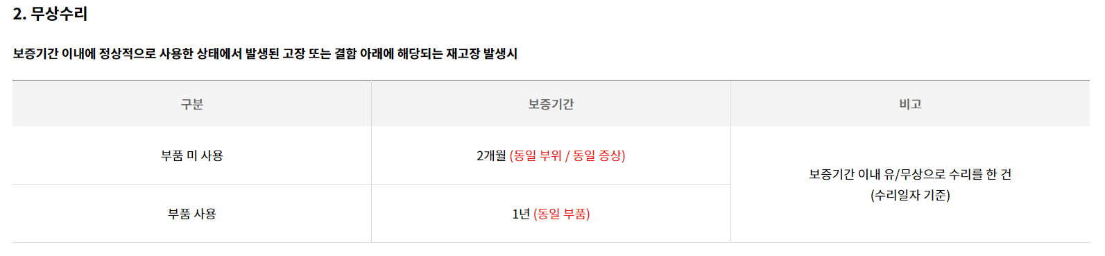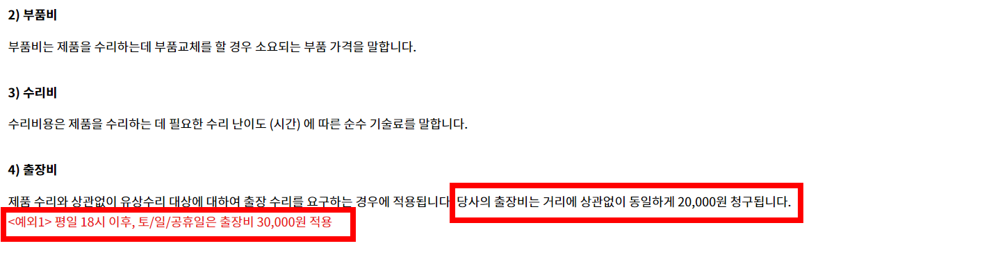 👉 부품비와 수리비 출장비를 포함해서 비용을 청구합니다.